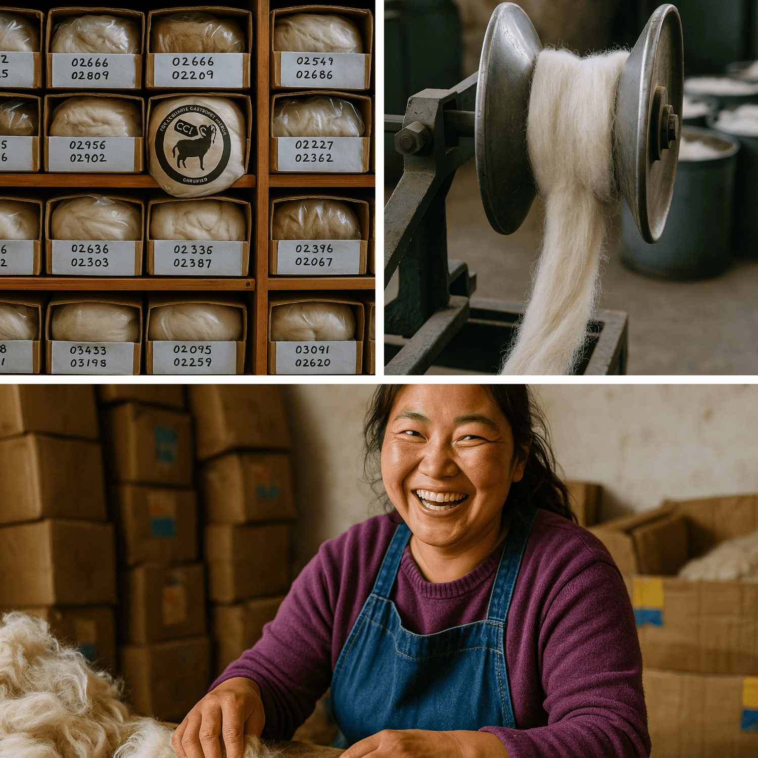 - La récolte : à la main (par peignage) ou par tonte. Le peignage est plus doux pour l’animal et permet de ne garder que les fibres les plus fines.
