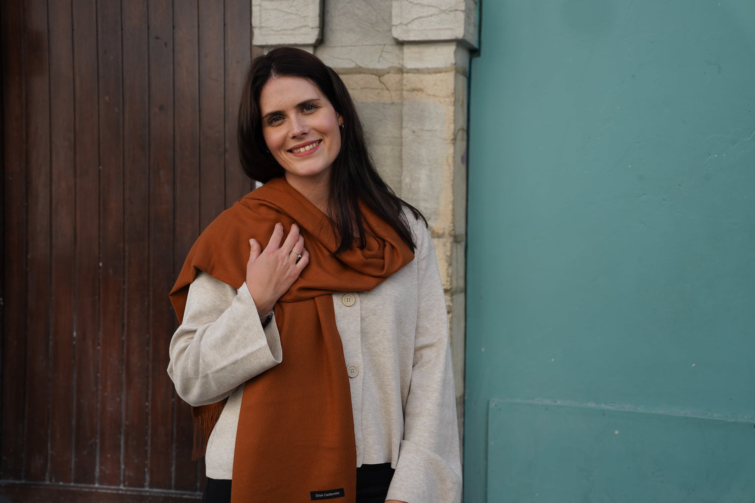 Une écharpe en cachemire cuivre de la marque Doux Cachemire est parfaite pour une femme pour plusieurs raisons :