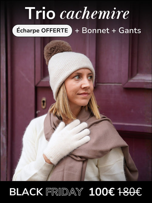 Offrez-vous la douceur complète avec notre trio en cachemire : Des essentiels chauds, durables et faciles à porter. Idée cadeau idéale avec nos coffrets cadeau 🎁