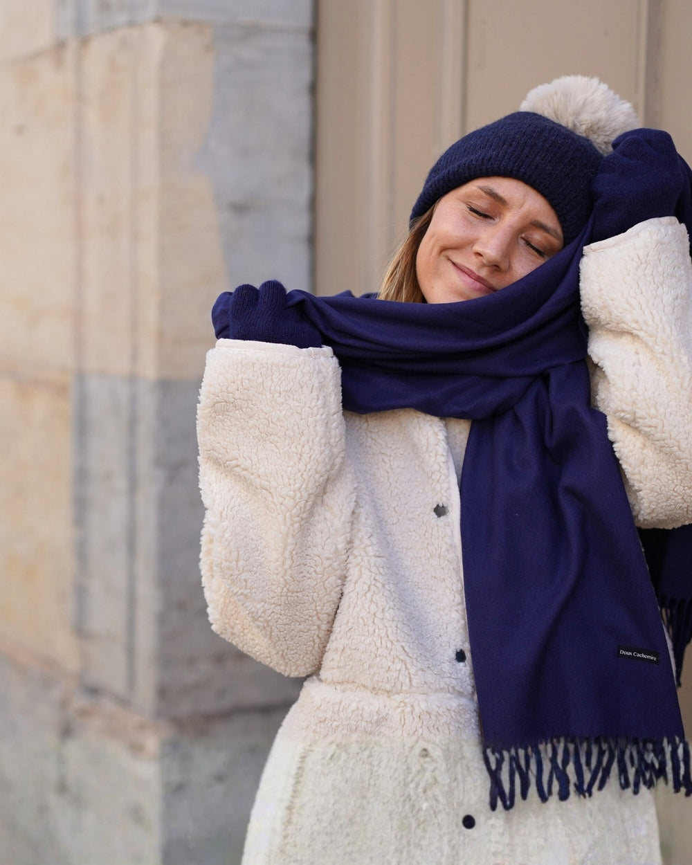 Trio cachemire — écharpe + bonnet + gants | Bleu marine