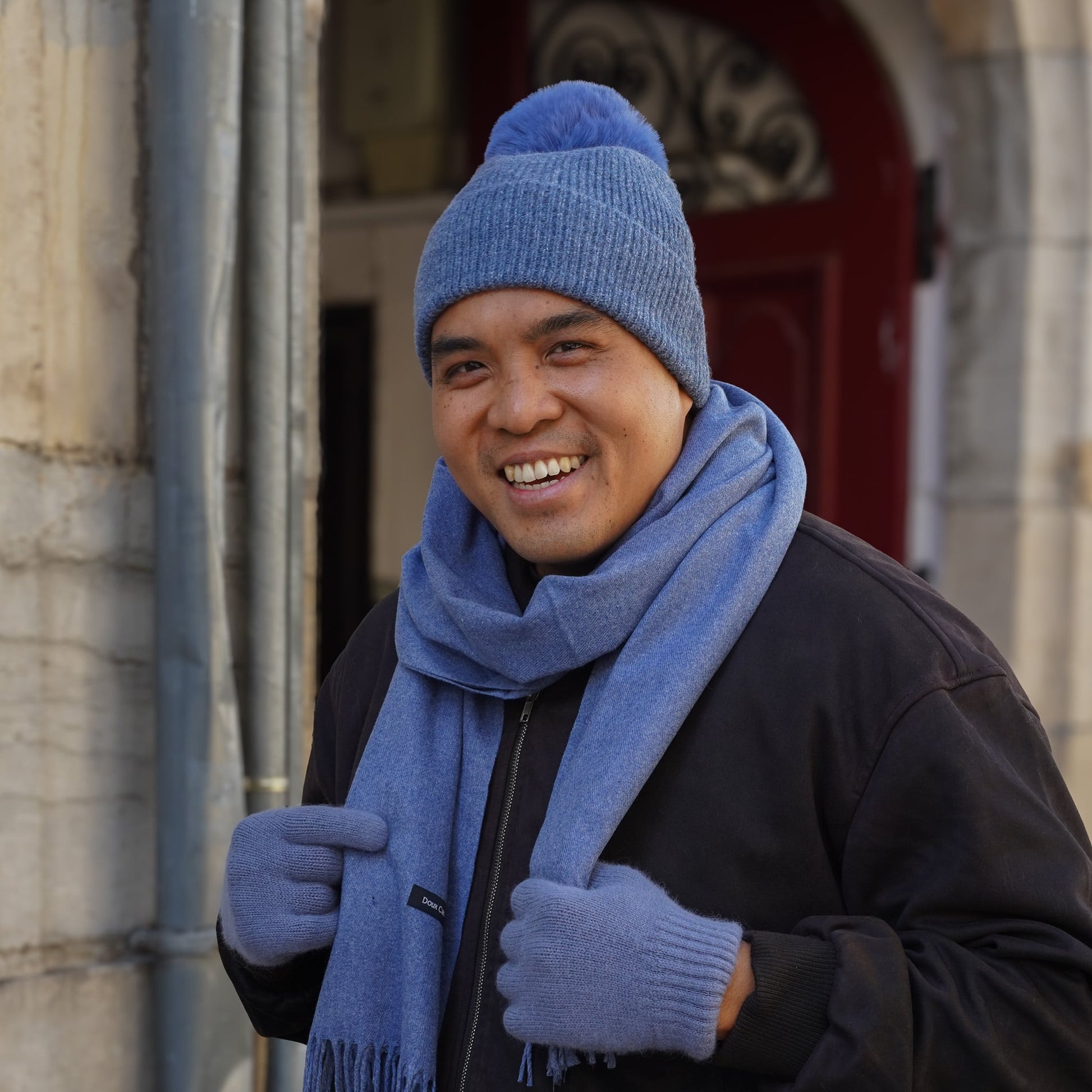 Plongez dans un hiver plus doux avec notre bonnet en cachemire bleu chiné, une pièce chaude et sophistiquée conçue pour homme et femme. Tricoté dans un cachemire sélectionné pour sa finesse et son toucher exceptionnel, ce bonnet offre un confort enveloppant sans alourdir. Sa nuance bleu chiné, subtile et profonde, s’accorde facilement aux looks urbains comme aux tenues plus casual — un basique chic à porter chaque jour.