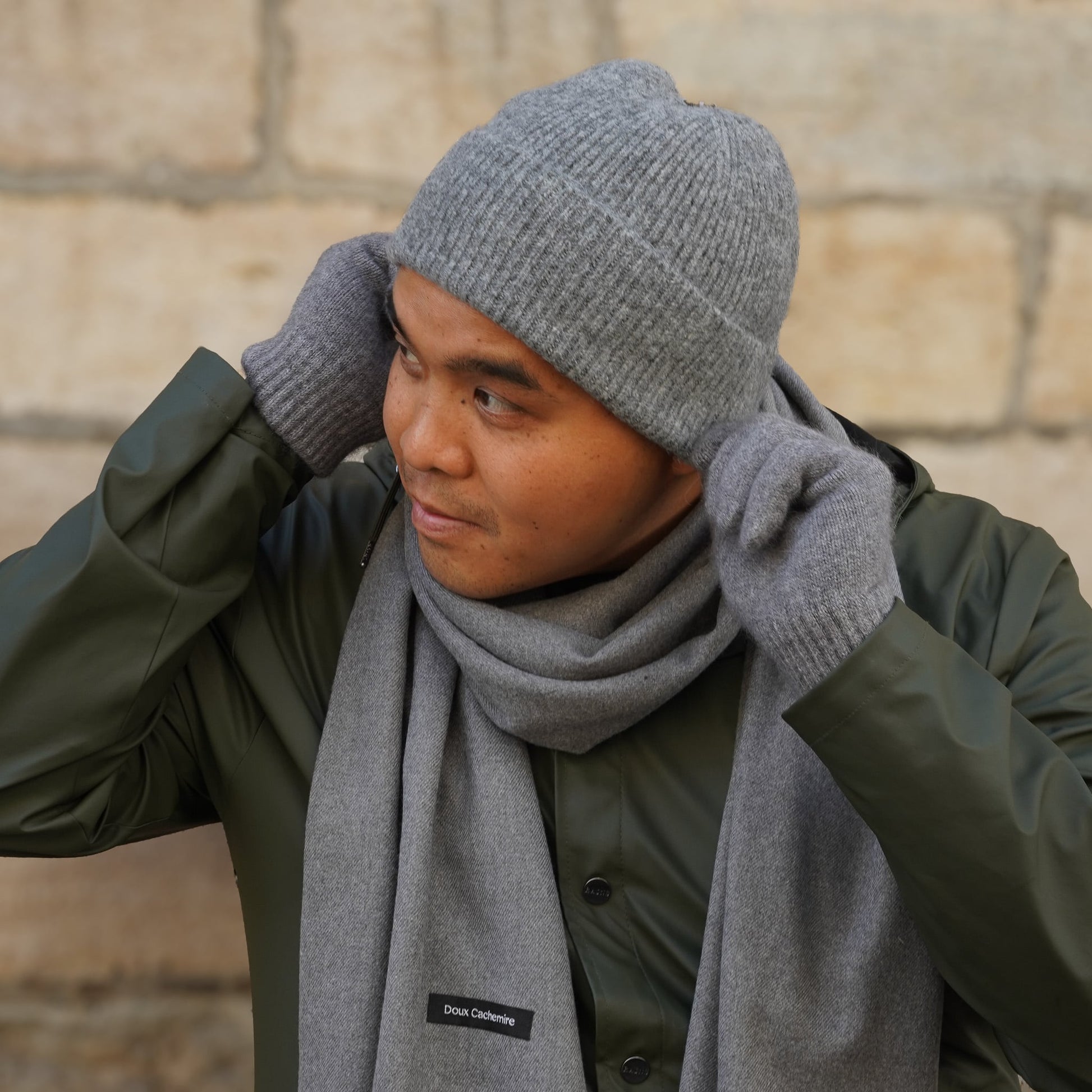 Laissez-vous séduire par l'élégance intemporelle de notre bonnet en cachemire gris chiné homme.